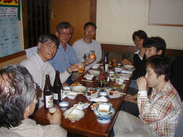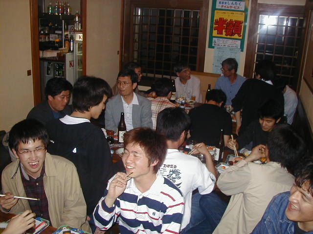 駅ちかくの飲み屋で、懇親会です。