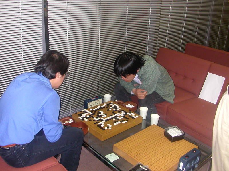 東栄さん(学生名人)と宮平さん(小学生名人) ともに日本一をとったものどうしの対戦です。 |