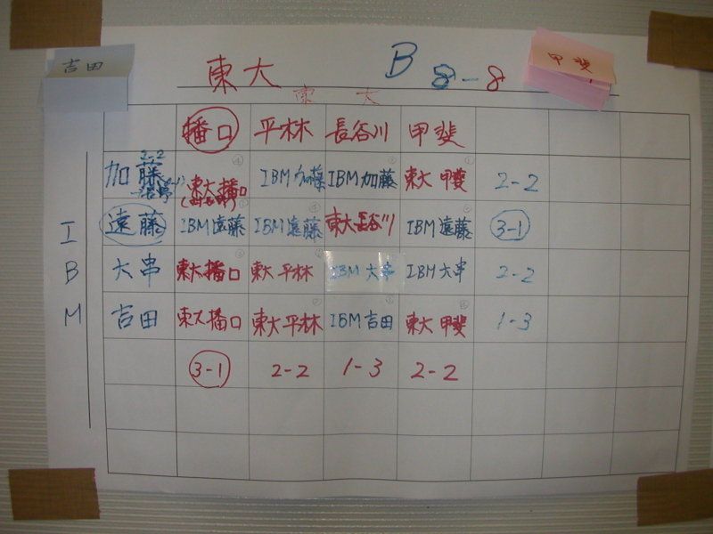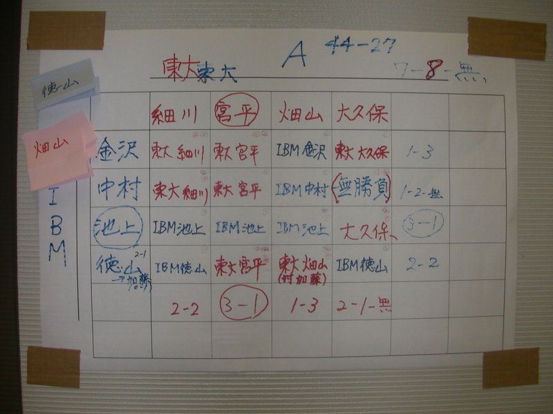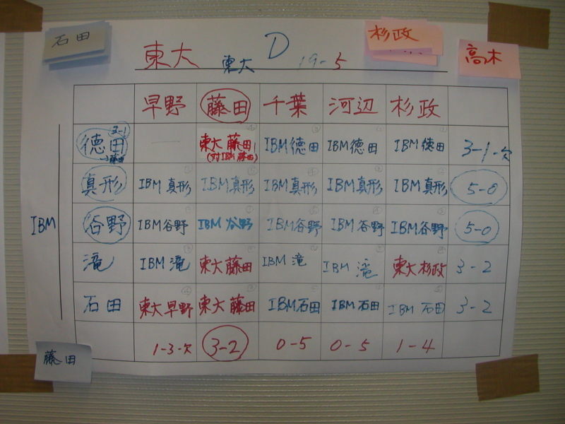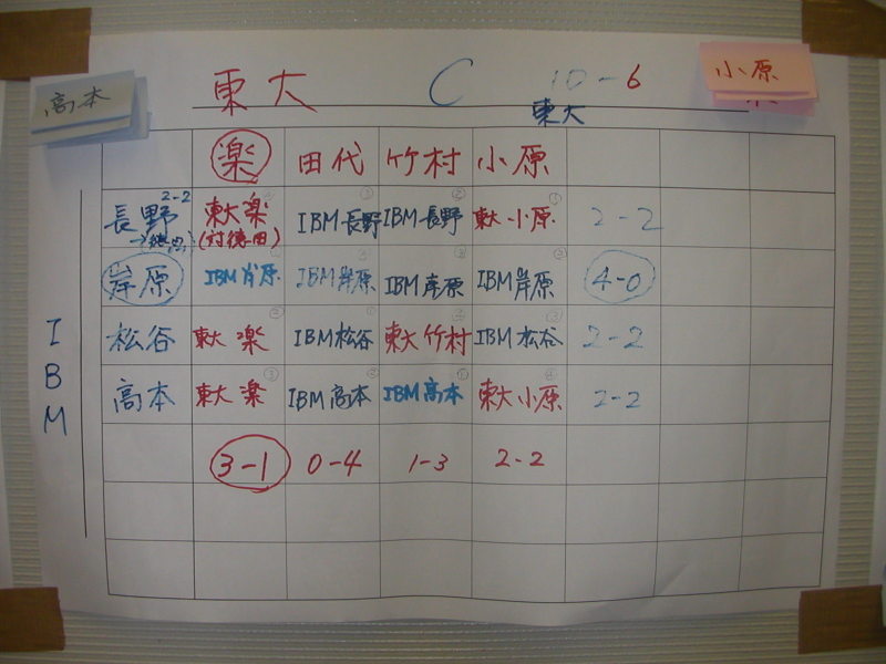 池上さんは、東大のAクラスの猛者相手に3-1と好成績をのこしました。 |