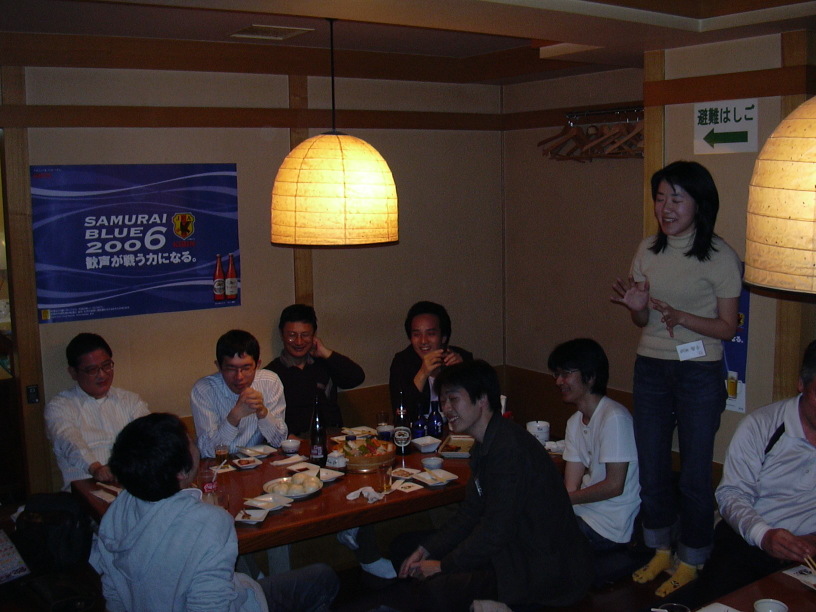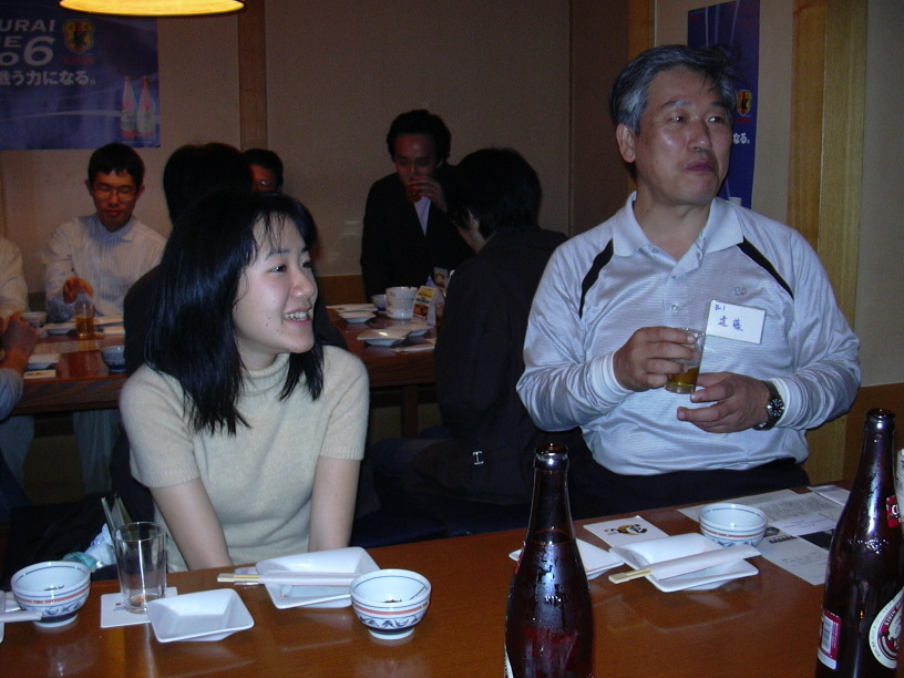 終了後の小宴 武田さん、遠藤さんは大学の先輩、後輩。 |
