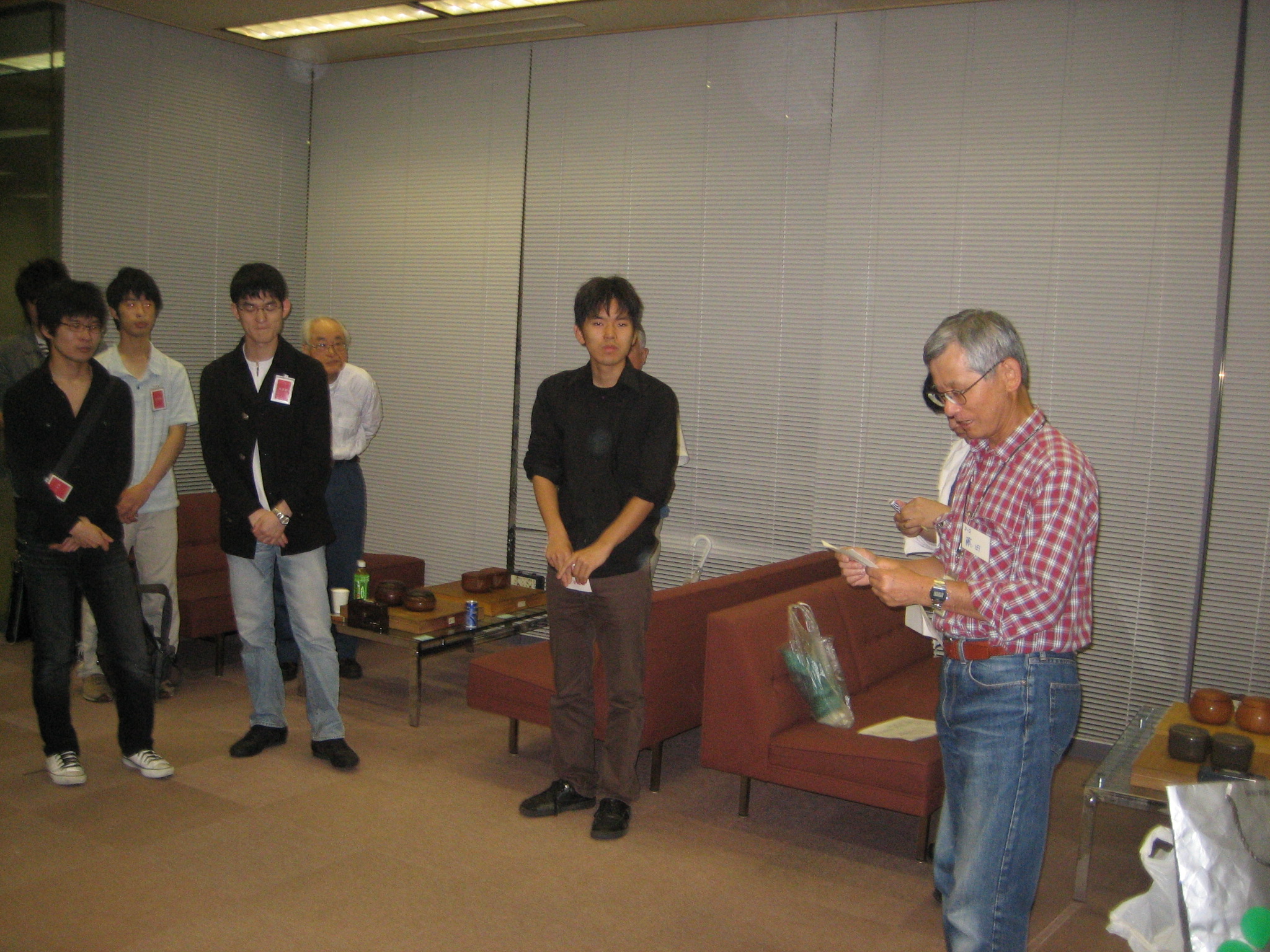 関東囲碁部の部長谷野さん挨拶 「今年の東京大学は強そうだからまいっちゃうなー」 |