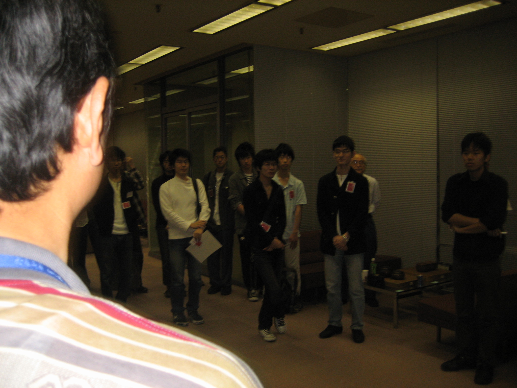 開会式で幹事の藤田さんがあれやこれやと説明をしています。