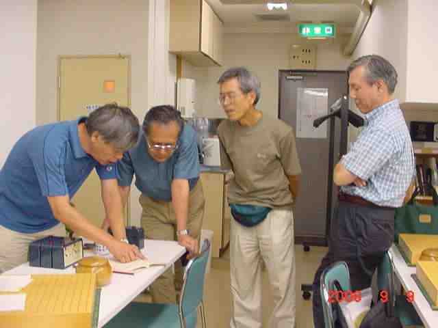 碁好き 中村さん、反省会中にも大盤に向かっていきました。本当に好きなん ですねーー碁が、そして教えることが...(^^、、、、