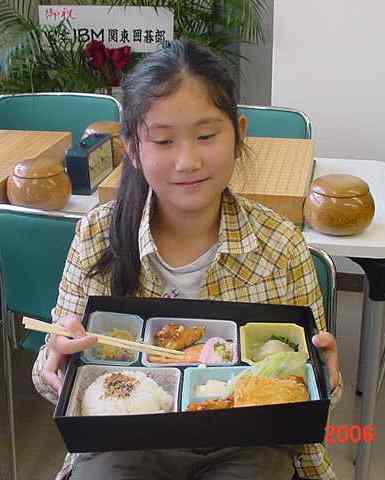 6 豪華弁当に満足のセーラちゃん喜びの入賞者! 全勝優勝で見事!連続昇段の馨ちゃんと2位入賞に笑みを浮かべるセーラ ちゃん。今度はNice shot! 影で喜ぶ父。