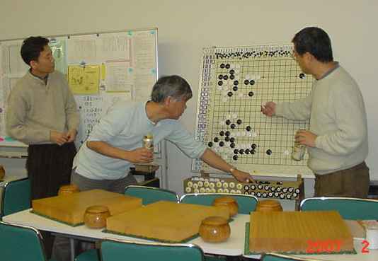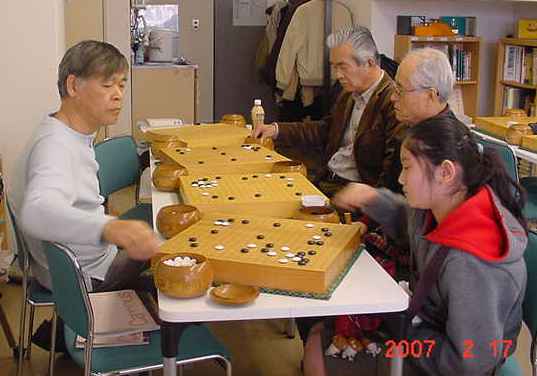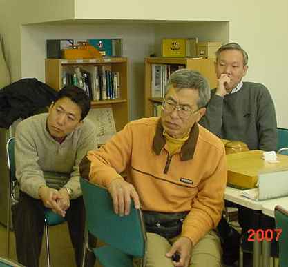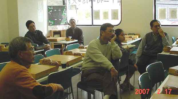 花碁会・月例会 2007年 2月度(第76回)、結果報告 2007/02/17(土) 囲碁道場 中村信夫にて 優勝 森さん 4−1 大和大会と連覇! 道場荒らし!? (何々!ここは自分の道場で荒らしてるのは花碁会?占領して!) 2位 谷野さん 4−1 おや?花碁再開しての初入賞?? 3位 長谷川さん 3−2 初参加にして入賞! 特別賞 中村師範 6−1 道場弟子には負けるわけにいかなかったと! 花碁賞 川島真雄さん、 こちらも初参加で初受賞!(^^、、、、 今大会は、大会前からわくわくしていた。四人もの初参加があるからだ。 会場の席亭であり花碁ゼミ師範でもある中村さんから紹介のあった長谷川 博一さん(4.5段)と板倉三男さん(4.5段)。 大和幹事・藤田さんから 紹介された森 敏章さん(5.5段)。そして、わたしが以前からお誘いして いた川島真雄さん。最初の三人は中村道場の常連の方々で中村さん推挙で 括弧の段位で参加いただきました。川島さんはIBM退職者で最後の職場 (2005/6/30退職)が、わたしと同じTSOL部品オペレーションという ことで、お会いした頃から誘っておりましたが介護の関係でなかなか参加 出来なかったのですが今回、なんとか都合をつけて初参加となりました。 川島さんからは1.5段での希望でしたが2段で開始していただきました。 奇数とセイラと中村師範? 参加者は12人と偶数だったが大会当日、会場に着くと中村さんから ”板倉さんから風邪で欠席しますと連絡がありました” とのこと。 出来るだけ偶数にしているため奇数になるとたちまち対応に困ってしまう。 大和・藤田幹事に言わせると、”奇数? なーに、まったく問題ありませ んよ! 聖羅が早く終わるのでどんどん打ってもらいますから” となる。 花碁会を中村道場で再開した折、もし奇数になった時には中村さんに打って いただけるか聞いていたことを思い出した。それで中村さんに三面打ちをお 願いすると快く引き受けていただけた。それで1・2回戦を打っていただく ことにした。一回戦の挑戦者は幹事の独断で申し込み順の早かった石田・川 島・聖羅さんの三人(幹事を除く)。そして二回戦は勝者の上位順位の三人 (長谷川・木村・森さん)となりました。3・4回戦は早く終わった方を組 み合わせて何とかうまい具合に進んだ。ところが最終局で一人アフレタ田中 (筆者)さん。セイラちゃんにお願いすると中村さんにお願いしたらとあっ さり断られてしまった。仕方なく(^^ ...喜び勇んで?中村師範にお願 いすると ”はい、どうぞ!” やったー! 奇数も悪くない!!! 花碁ゼミ 大会開始前の「花碁ゼミ」 中村さん、毎回ありがとうございます。 また、奇数の時には特別参加をよろしくお願いいたします。 熱心に指導の中村師範と参加者たち