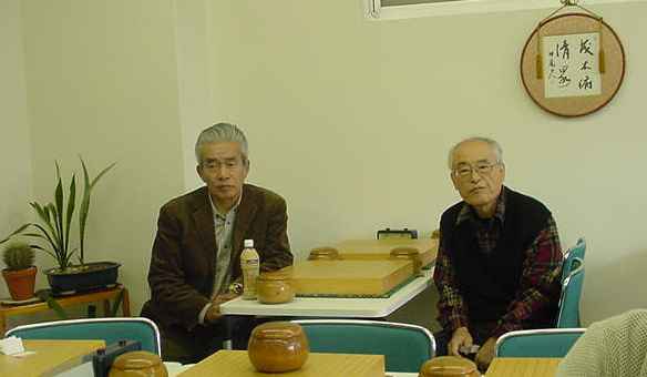花碁ゼミ2大会模様 さて、中村師範に急遽入っていただいて1・2回戦の6局と最終一局の計 7局打っていただいた結果、師範の6−1であった。唯一の金星を花碁会・ 会計の木村さんに贈呈するあたり、席亭としてちゃんと心得ている(^^、、、 それにしても木村さん立派な勝利でした。 ”ええっー、木村さん、攻めて くるねー”と珍しく中村師範のボヤキを誘った。 ”おー!木村さん頑張っ てるなー”と内心嬉しかったが、本当に勝ってしまうなんて ”信じられな ーい”成績表には良く出来ましたの花丸印を付けて笑い種をまいてしまった。 わたしも最終局を打っていただきましたが序盤早々に打つ気が無くなるよう な凄まじい負け碁だったことを思うと、木村さんの勝利は本当の金星であった。 中村さん曰く ”道場の弟子だけには絶対負けられなかった。花碁の人たち から何て言われるか” (^^、、、道場弟子のみなさま、すいませんでした。 中村先生いつもより随分強かったのでは! 中村先生には、プロと一緒で 本気出されたら ”何子置いても勝てる気がしません”