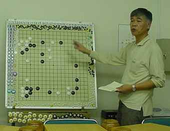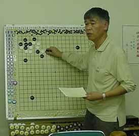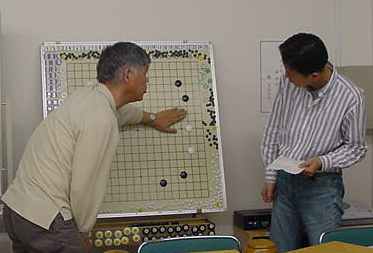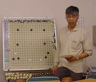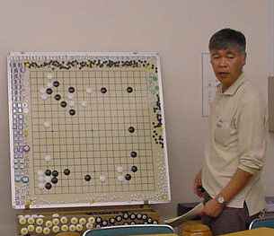 大会時の成績表始めに森さんのプロ棋士指導碁(田原靖史六段)の検討でした。 かなり時間オーバーして打っていただいたようです。 健闘むなしく結果は●でした。