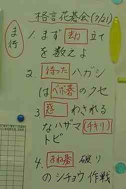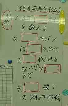久々参加の岸原さん格言=格言Q(左)が問題。考えてから格言A(右)で確認してください。
