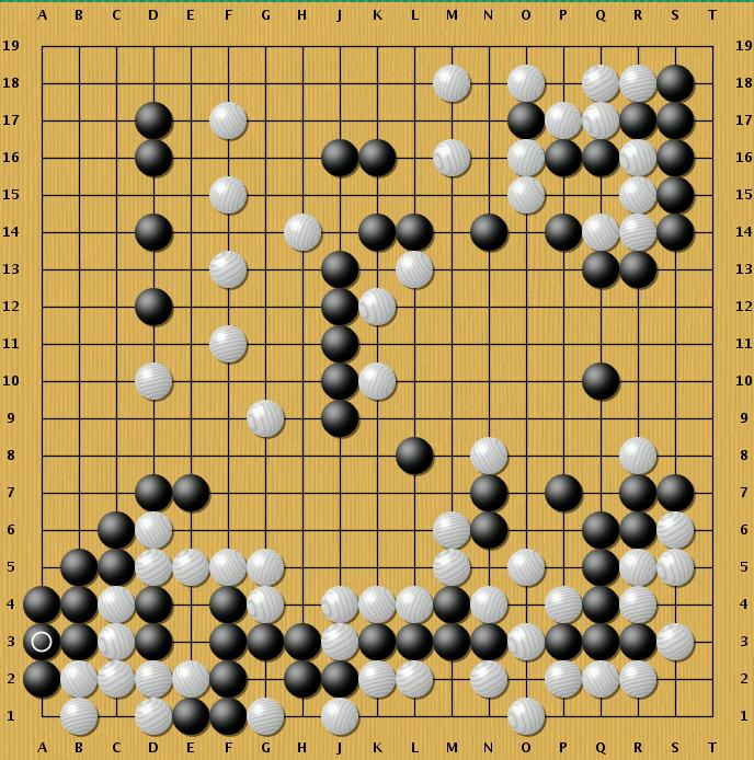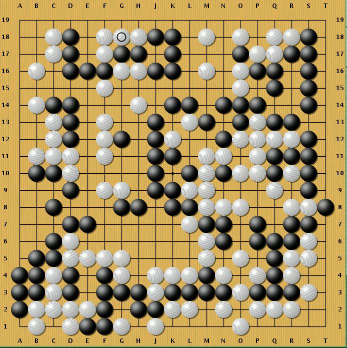 ここから奇跡がおこります。 まず、太平洋に突撃の落下傘部隊をおくりこみました。 すると黒にも少し弱いところがあり、味が悪くなりなんとか 中で、生きることができました。次に左上です。自分の ほうが弱いのですが、相手の石をがんがんせめてみました。 すると、上辺とふりかわりになり左辺がずっと地に なりました。これで少しは勝負になったか?おそらく、形勢は まだ黒がよかったことでしょう。上辺は攻めあいの形なので 攻めとりにする手をうったら、相手が隅のほうにはねてきました。 え?いいの??私は怪訝な表情で2子をとりました。 (参考:田中さん、この手に手抜いて隅へハネル)