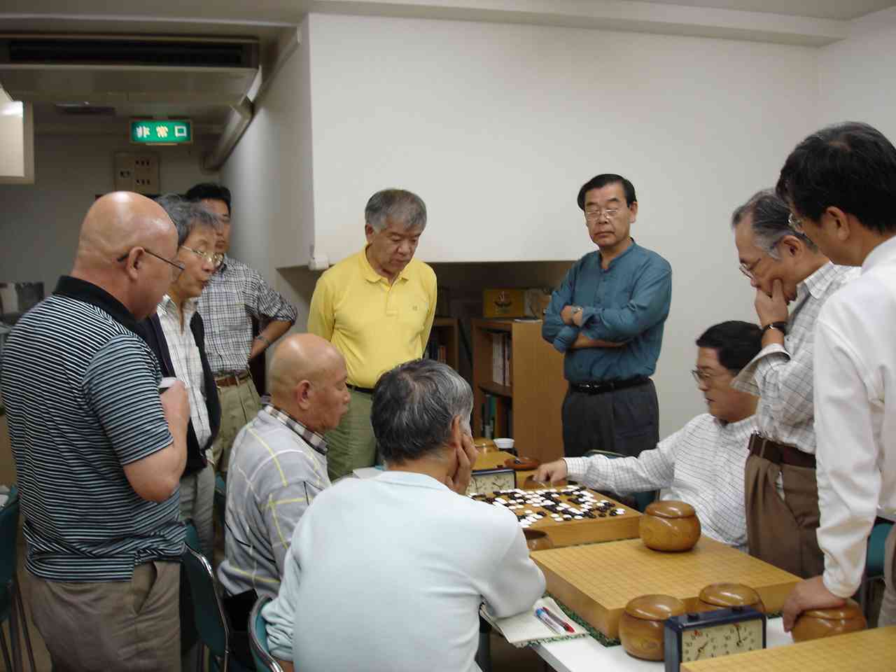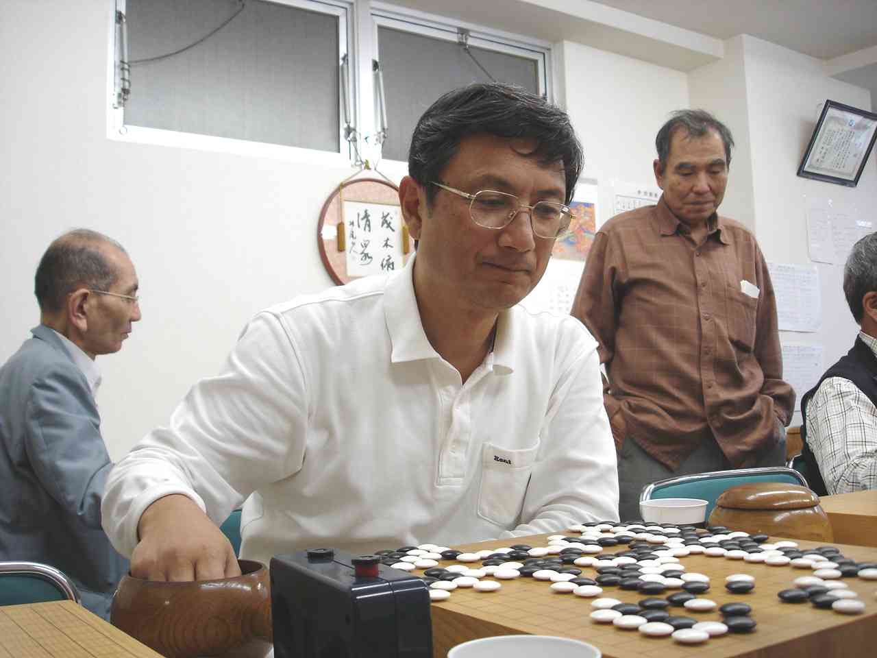 Aクラスは全勝の谷野さんを除いてすごい混戦、3−2が二人(入賞)。 2−3が4人、1−4が一人でした。早速講座の手筋を使って勝ったと か負けたとか話が盛り上がっていました。瀧さんは5.5段に昇段しての 初めての大会でしたが立派に入賞を果たしました。古川さんは森さんの お陰で3位入賞となりました。(次のわたしの観戦記を参照) 初戦、自分の碁が早く終わったので熱戦の森−古川戦を観戦しました。 古川さん、例のごとく長針が今にも落ちそうです。まだまだ終わりそう もない局面で、また、時間切れ負けだな、と思いながら目算していた。 ここで驚くことが起きました。森さんはと言えば、まだゆうに10分は 残しているが、打った後にボタンを押さずに自分の時計を回わしている。 そんなに余裕は無い筈なんだけどなー。もう一度目算してみるが森さん の方がいくらか劣勢に見える。はてさて終わってみたら古川さんの3目 勝ちだった。対局後、森さんに聞いてみた、”勝ちを読みきってのこと だったんですか””いいえ” すごいものを見させてもらいました。 よく見る風景とは全く逆です。碁で勝てないとみると時間で勝とうとす ることは結構普通に見かけます。きっといい碁を打ちたい、楽しみたい とのことなのでしょう!!打っている時に森さんの表情はと覗いてみた、 勝敗よりも碁を打てる喜びというのでしょうか、楽しそうな、すがすが しい気持ち良いお顔でした。 対局後もその表情は変わっていません、 いやむしろ喜びが増し加わったように見えました。 わたしは碁というゲームを見直しました。碁をとおして豊かな人間性を も高めることが出来るのだと。自尊心や相手へ思いやり(人間愛と言っ ても良いかもしれない)この精神態度はわたしたちアマの碁打ちにとっ て立派な手本のような気がするのはわたしだけでしょうか!!!! Bクラス 2戦を終えて連勝したのは石田さんと外山さんの二人。3回戦で外山さ んが石田さんを破り3連勝と優賞の二文字がちらつく。これを外山さん は、面白い表現をしていた。”3連勝は好きでない、勝ち進んだ強者 (今日は田中さんだ(^^、、、)と当たるので2−1くらいが好きだ” という訳です。昼休みの頃からいやに皆が ”田中さん強いからなー” と幹事を持ち上げる。ちょっと勝ち越すと幹事の関係で注目されるのだ ろうと嬉しくなりました。 外山さんの心配は的中、田中さんに負けて4連勝ならず。この後も松田 さんに敗れて3−2に留まった。が他の人も星が伸びず、3勝ながらラ ッキー2位入賞を果たしました。そして3位(勝ち点同点で本人どおし の勝敗)には、3段に昇段したばかりの岡田さんが入りました。道場の 持ち点だと白黒逆転現象もあって面白い対局があったようです。