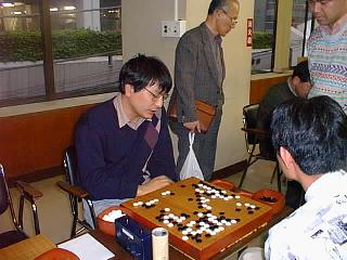 Bクラス副将 山口さん 3戦全勝 Bクラス副将 岸原さん 3戦全勝 Cクラス副将 兵藤さん 2戦全勝 Cクラス参将 服部さん 1戦全勝 その他の写真 こぼれ話 ●疲れが残っていた!? 7チームエントリーしていたのですが、うち6チームは 1試合目に敗れさってしまいました。ある選手は、この凄惨な状況を 分析し、「昨日の試合(スーパー小津杯)の疲れがまだ残っていたんだよ。」 とコメントしました。実際、2試合目はIBMの全チームが勝利。(これも 珍しい記録です) しかし、エンジンがかかるのが遅すぎたようです。 ●わざわざ1試合のために、、 Cクラスの服部さんは、初戦に遅刻(大木さんが代打)二試合目からの 出場となりましたが、三試合目に予定されていた相手チームがきておらず 不戦勝、ということで、大会で1試合しか打たなかったという珍記録を 作りました。 ●頭痛が、、 Bクラスの山口さん、冷たい缶いりのお茶を額にして、「頭痛がする、 頭痛がする。。」と悩ましい表情をみせていました。「これは碁どころ じゃないな、大丈夫かな、」と心配して気づかっていたのですが、 碁は全勝。。頭痛がしたのは山口さんの対局相手のほうだったかもしれません。 ●聞こえたかな? Cクラスの中山さんに、「次の試合の相手はどこですか?」と問うと 「日立電子サービスですね。もしかしたらサービスしてくれるかな?」 と答えていました。この試合の結果をみるかぎり、もしかしてこの 会話が相手に聞こえていたのかもしれません。 ●良い記念 Aクラスに出場していた某市役所は、遠路はるばるやってきたのですが、 いかんせん、手合い違いもはなはだしいエントリーだったようで、 さんざんな結果に終ったようです。それでも、金沢さんや中村さんと 対戦できた相手チームの人は、「 有名な人と打てて良い記念になった。 しかし、次はDクラスにエントリーしよう」と抱負を語っていたそうです。 宴会の ●ポーカーフェース IBM不動の大将で、今回も5試合全勝した金沢さん、その碁の技もさること ながら、その威風堂々とした対局姿勢に注目が集まりました。 とくに碁の局面が緊迫していようがどうあろうと表情がいっさいかわらず たんたんと打ち進める様子には皆、感心していました。そして、 その後のうちあげの席では、対称的に碁の最中に動揺したり、悲鳴をあげた りする人を一人一人あげて、あの人はだめだ、この人もだめだ、、と論評 がくりかえされ爆笑する一幕がありました。 以上 ////Tatsuya Kishihara//// Systems,SW Center, IBM Japan Tel:0462-73-6455 ext:185-6455 IntZip: LAB-T06 E-Mail:jl20259@yamato.ibm.co.jp Notes:Tatsuya Kishihara/Japan/IBM まさに記者魂を発揮した岸原さんは4/19の朝刊(午前便?)に間に合わせる べく帰宅後当メールの原稿書きに余念がないのでありました。選手として も3連勝と関東囲碁部になくてはならない逸材です。 ●○●○●***** Enjoy your Business, Enjoy your Life! *******● ○●○● Kenshi Ohki (Tel:03-3808-9970) ●○ ●○● Sales Operations Communications Sector IBM Japan ●○● ○● (Fax:03-3664-4908 E-mail: ooki@jp.ibm.com ) ●○●○ ●****************** 大木建志 ***************●○●○●