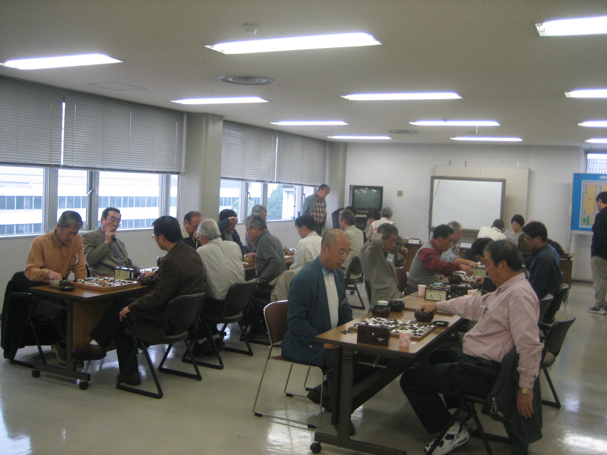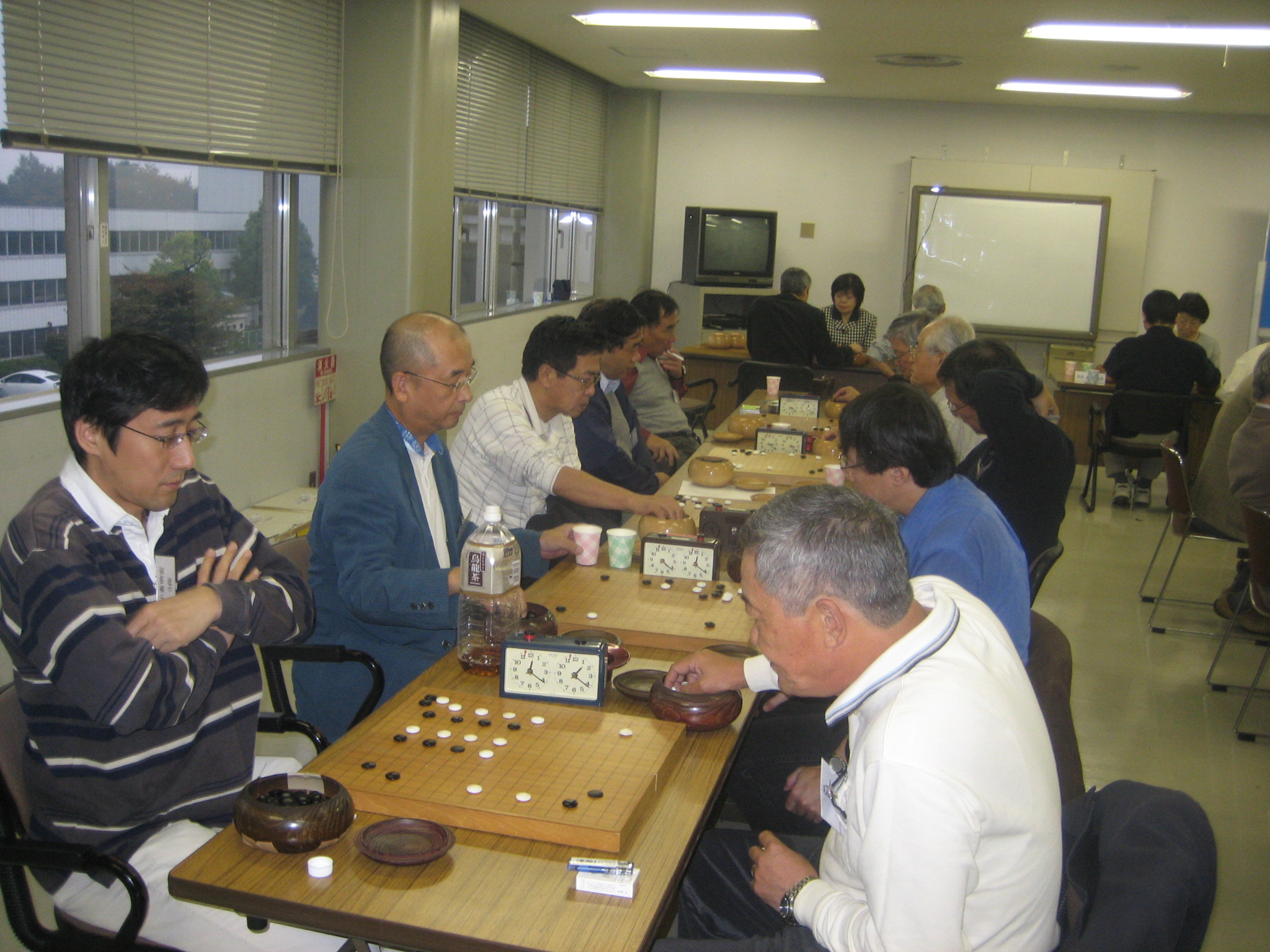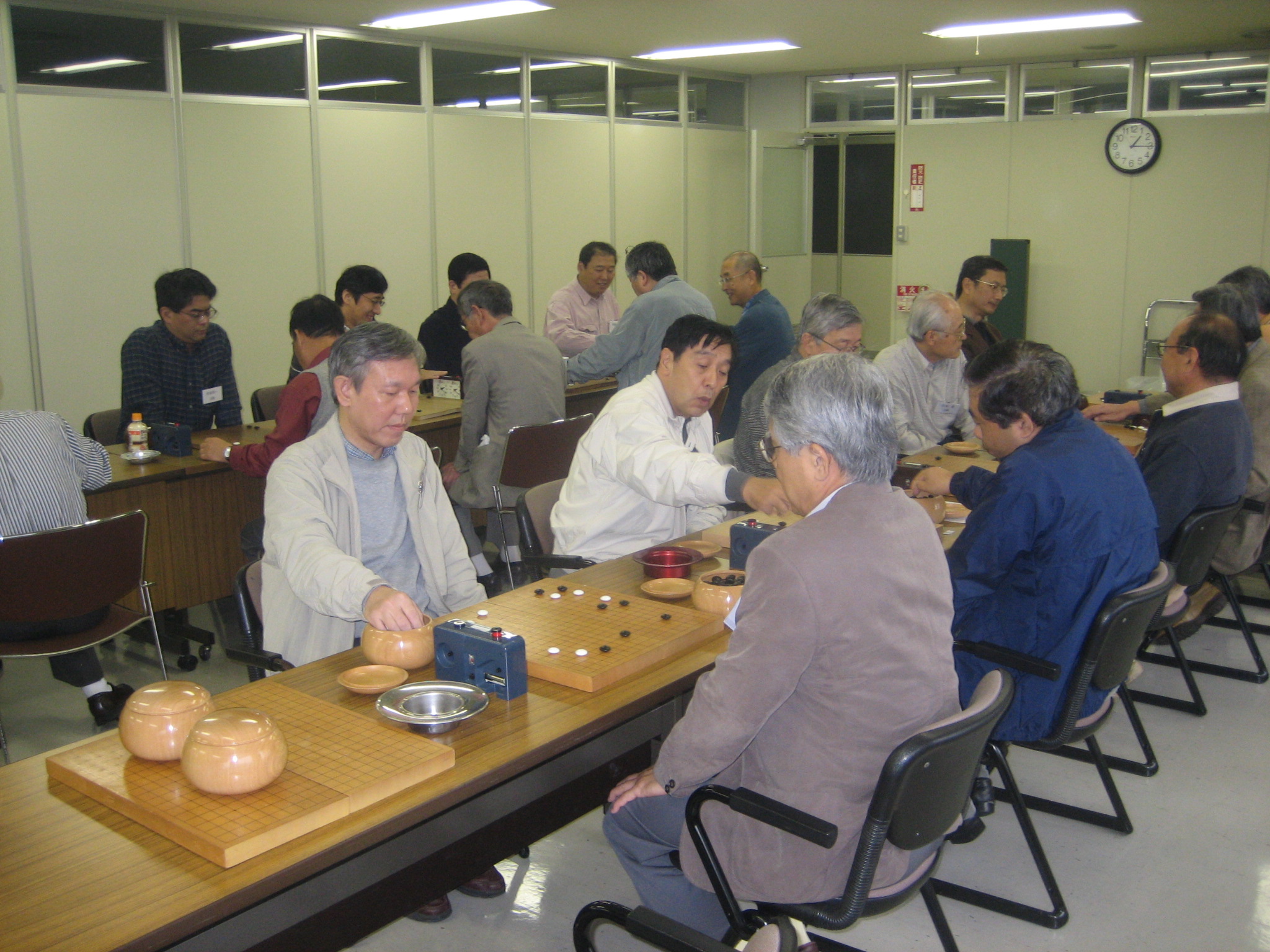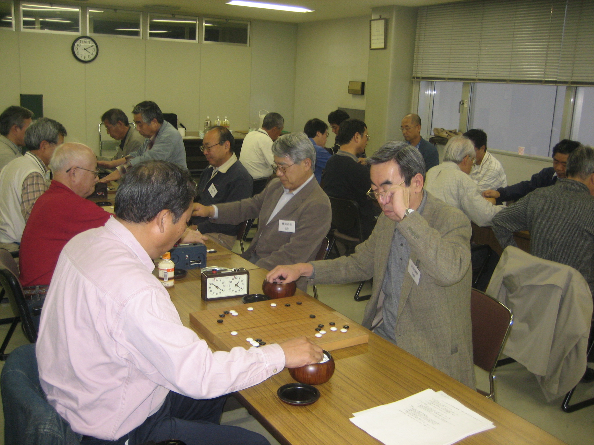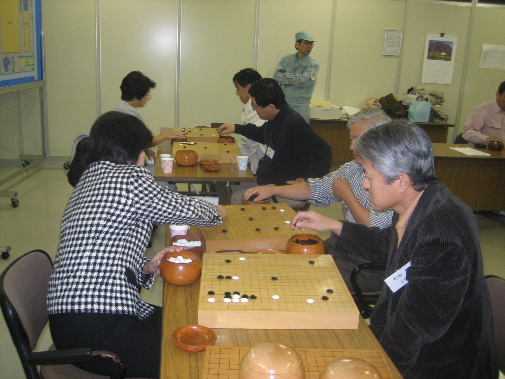 佐藤真知子先生と対戦中の石田さん(手前)、新川さん(奥) 石田さんはみごと勝利、新川さんもジゴとなり健闘されました。 |