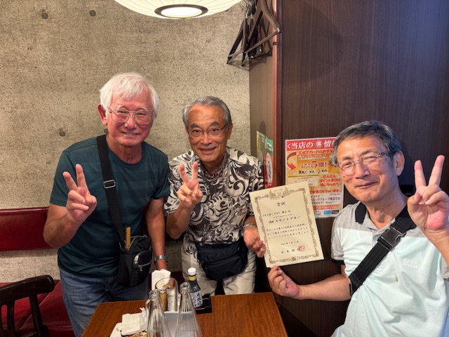 チーム3名で表彰状を中心ににこやかに準優勝記念写真となりました。