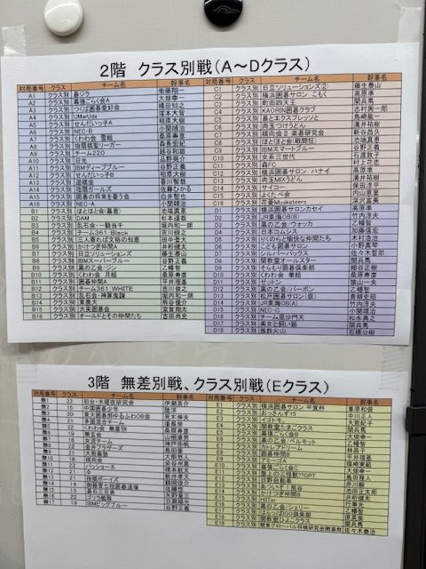 大会は無差別クラス、A,B,C,D,Eと合計6クラスにわかれて、全部で102チーム、