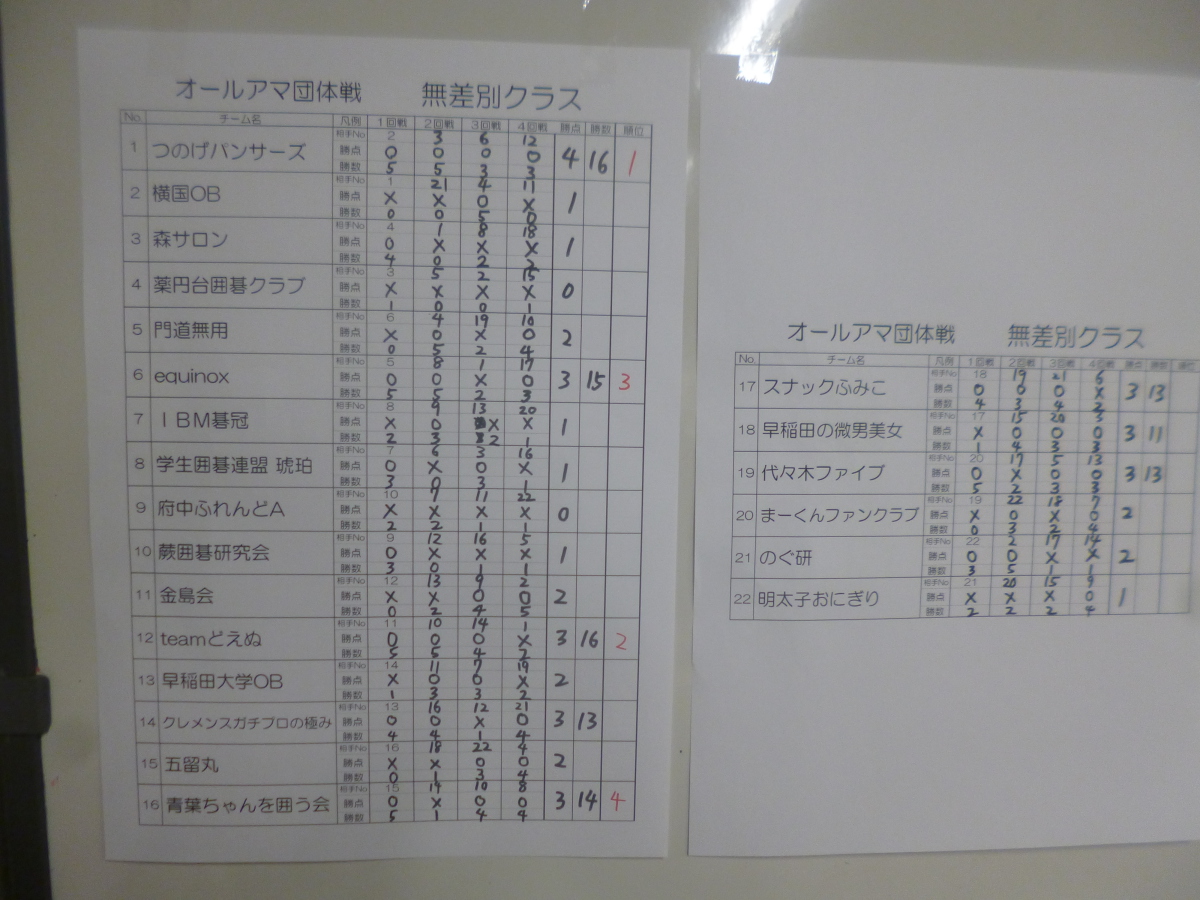IBM囲碁部報16009:2016年度第12回オールアマ囲碁団体戦結果報告