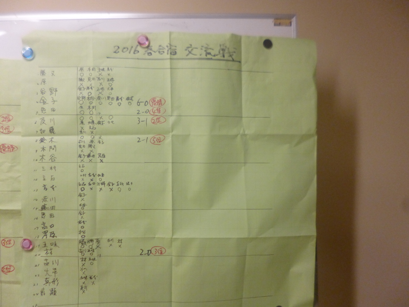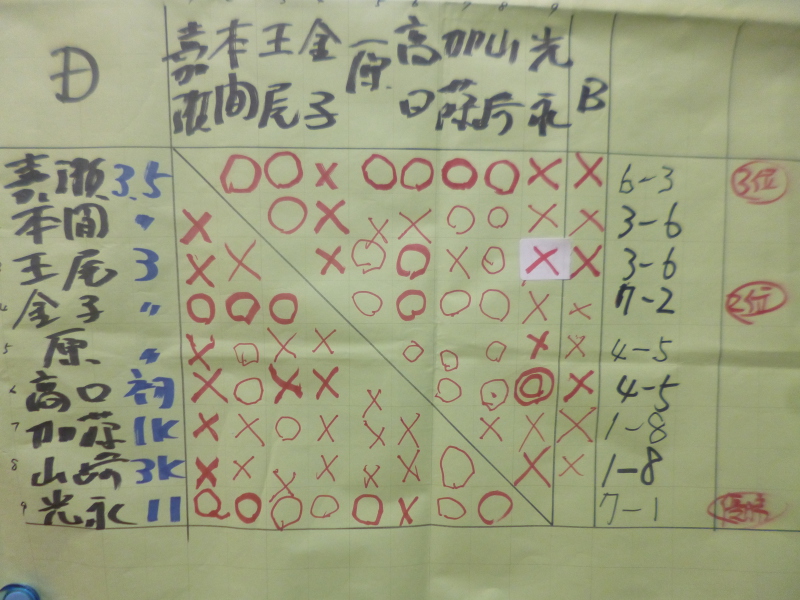 決めました。 中山さん、林さんが、6勝3敗の成績で2位、3位と続きました。
