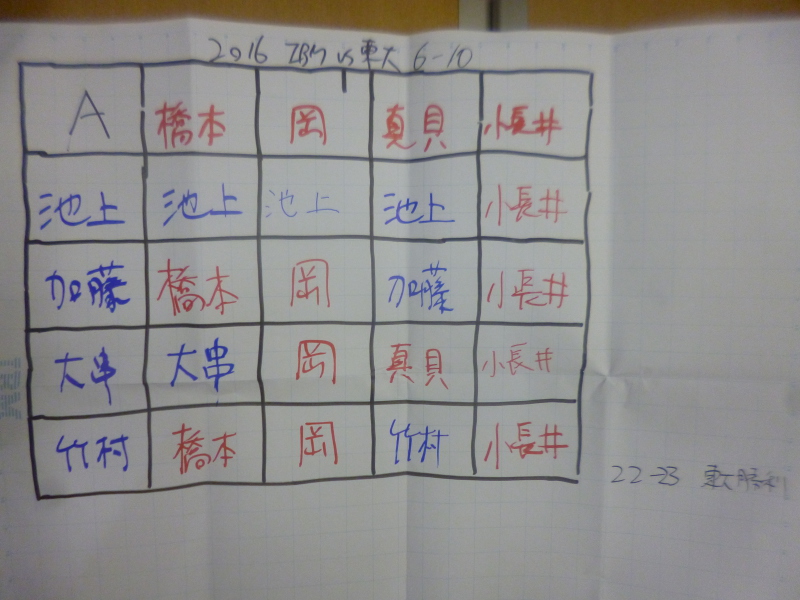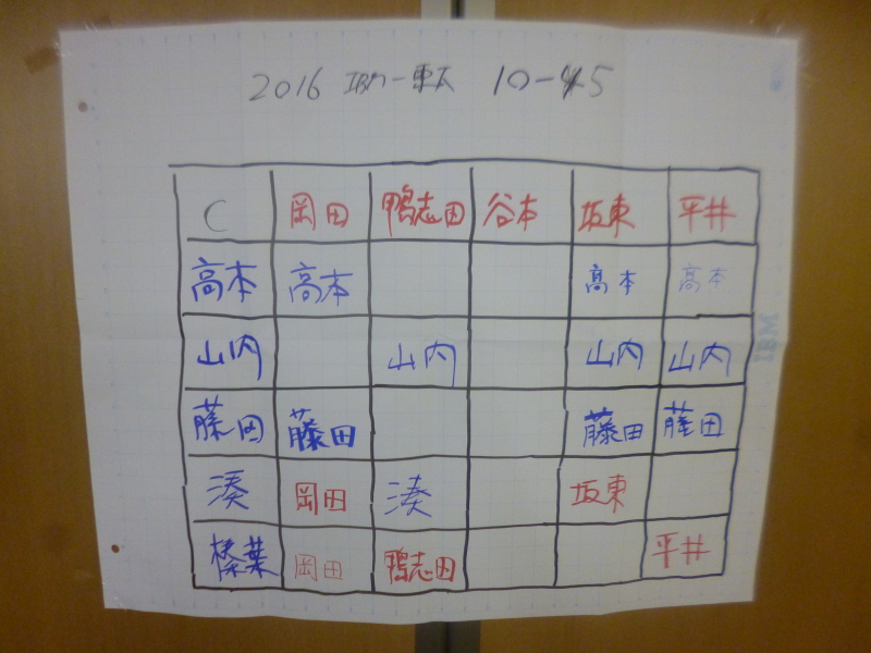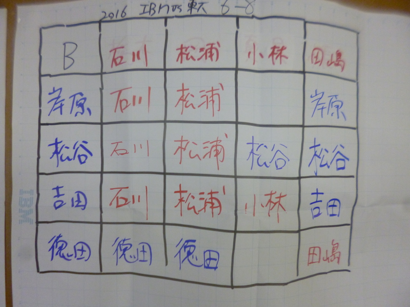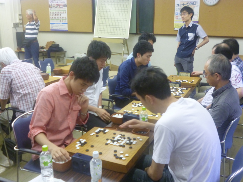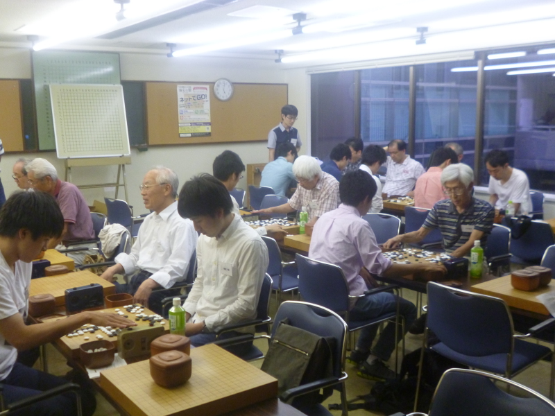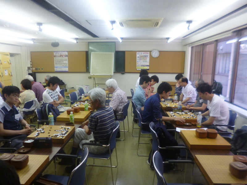 6月18日(土)に行なわれました東京大学囲碁部との親善試合の結果を報告します。 東京大学との親善試合は、今回で数えて18回目になります。 ここまでの対戦成績はチーム成績では9勝8敗とIBMが1つ勝ち越していますが、 個人総合成績ではIBM側の512勝531敗と19負け越しています。 東京大学側は12名が参加し、IBMの選手13名と3クラスに分かれて4回戦方式で互先に て交流試合を行ないました。 参加選手 IBM 01.池上 均 02.加藤 武彦 03.大串 天光 04.竹村 直 05.岸原 達也 06.松谷 治 07.吉田 嶽彦 08.徳田 隆行 09.高本 正 10.山内 裕介 11.藤田 聖羅 12.湊 信幸 13.榛葉 大樹 東京大学 01.橋本 淳平 02.岡 幸四郎 03.真貝 淳一 04.小長井 旭 05.石川 輝 06.松浦 孝弥 07.小林 敦 08.田嶋 樹 09.岡田 憲一郎 10.鴨志田 葵 11.坂東 佑星 12.平井 雄太 IBM側からの成績 Aクラス 6-10 Bクラス 6-8 Cクラス 10-5 総合成績 IBM 22勝 東大 23勝 東大の勝利 1勝差の僅差で東大の勝利となり、通算の対戦成績でも9勝9敗の五分となりました。 個人総合成績ではIBM側の534勝554敗と20負け越しています。 成績優秀者 4戦全勝: 小長井 旭(東大) 3戦全勝: 高本 正(IBM) 山内 裕介(IBM) 藤田 聖羅(IBM) 対局後は場所を移して懇親会を開き、学生との交流を大いに深めました。 来年も東大親善試合をよろしくお願い申し上げます。 東京大学親善戦幹事 竹村直 ◎親善戦こぼれ話 □参加人数右往左往 幹事間で人数調整を行い、東大側15名、IBM側15名となりました。 しかし、東大側で東大OB戦の開催が急遽発表され現役先週数名が出場要請!? 15名が9名の出場予定になってしまいました。ここでIBM側で出場の早稲田大 藤田聖羅さんが「なんとかしてよ」と手をまわして、これにこたえて幹事 が選手を集め、IBMも二人が出場見合わせて、お互いに13名どうしとなりました。 ただし、当日は東大側1名が体調不良で出席できず12名でした。□開催場所右往左往 日本棋院の入り口、その日の催しが電光掲示されますが、IBM東大親善戦の掲示 がありません。6Fへ行くと、いつもの部屋があいてない!ということでびっくり 2Fにいくと、予約はいってませんよ!えー!そこで急遽2Fの受付の方があいている 部屋を探してなんとか代替の部屋がみつかりことなきをえました。 IBMも東大も6Fにいった人は「あれれ?」と慌てつつ、おりてきました。 この件、最終的には棋院側の予約確認ミスというのがわかりました。 次回は事前に確認もいれておくと良いかもしれません。