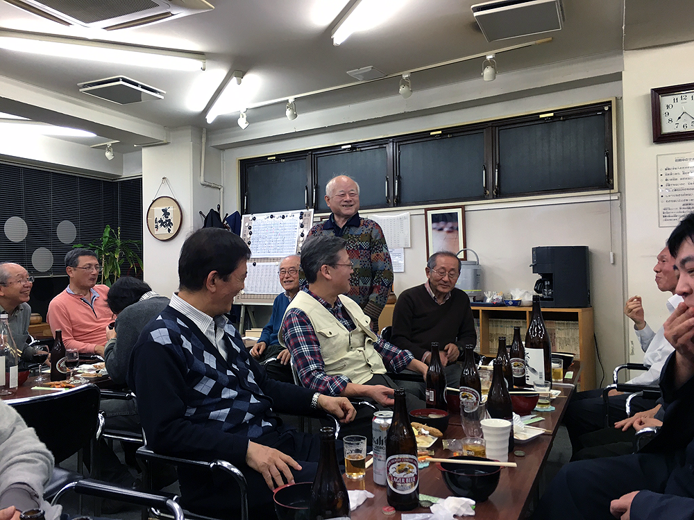 吉田席亭からお礼の挨拶。先代が碁会所を始めた経緯から、一時は溝の口と自由が丘でも碁会所を開いたが、力尽き最後の囲碁サロンを閉店することになった。聞く方も胸が詰まりました。