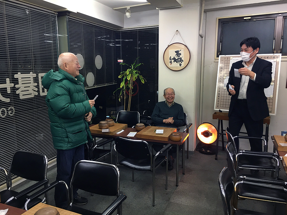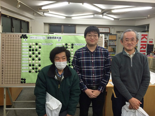 新春囲碁大会 Bクラスで私が優勝。左はAクラス優勝の塚田氏。中央は日本棋院関 達也二段(当時)。