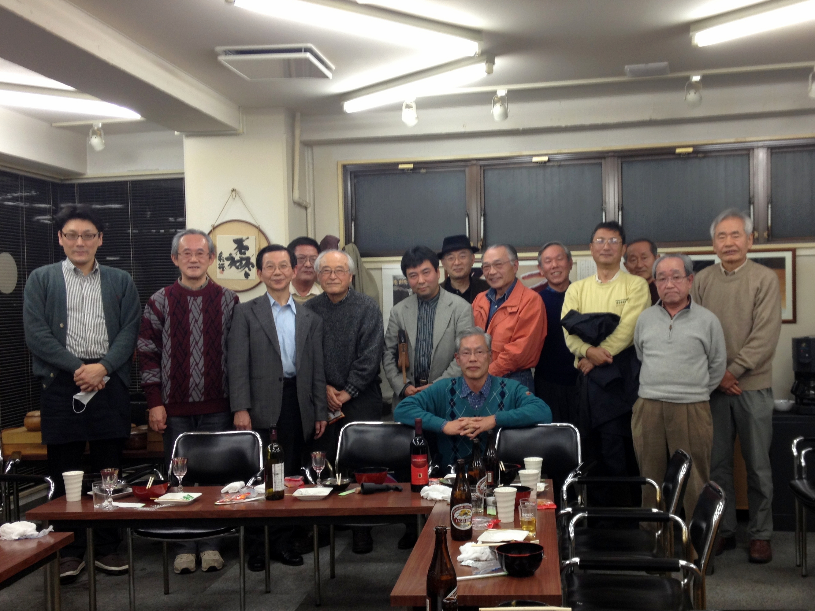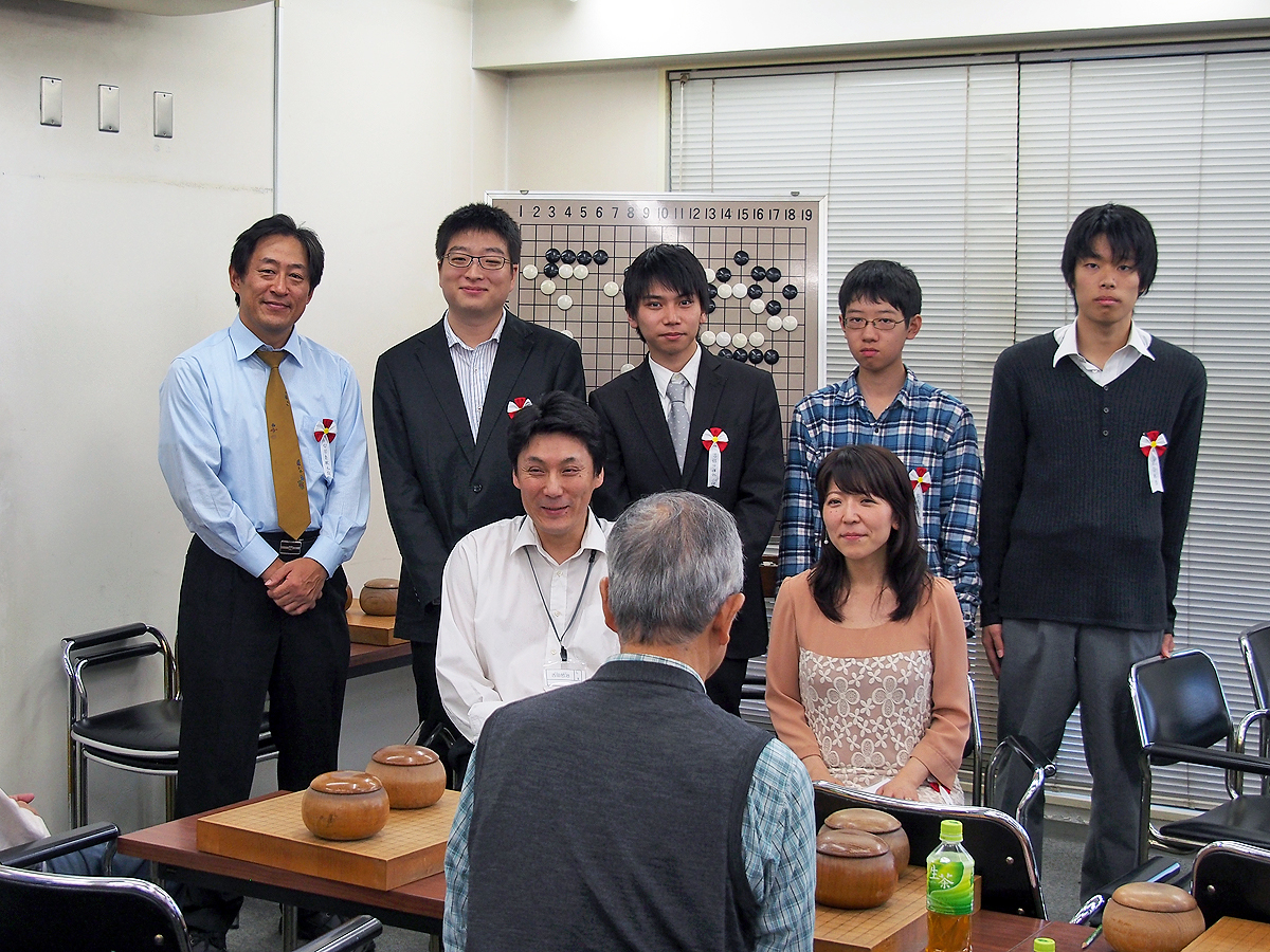 2012年最終の武闘派囲碁会。近くにお住まいで、会社囲碁部講師の日本棋院小松藤夫八段も特別参加。 年に一度程様子を見ながらぶらっと参加していただいている。
