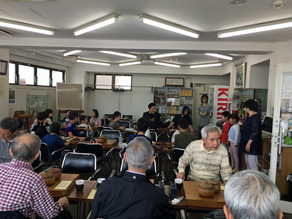 武闘派囲碁会は日曜日正午開始。午前中は子供教室が開催されており、子供たちが元気に挨拶。孫の世代の挨拶に顔がほころぶ。