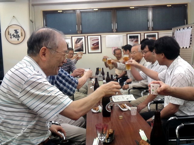 懇親会では嘉瀬さんを悼んで献杯。その後全員で嘉瀬さんの思い出を語った。