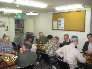 2008年から会社囲碁部メンバーが主催している「武闘派囲碁会」。毎月一度日曜日12時から、20人前後が出席しポイントによるハンディ戦で、持ち時間45分の4対局おこなう。勝ち数の次は取った石数で 順位が決まる。投了と時間切れは-20ポイント。目数であきらかに10から20負けていても投了せずに最期まで ヨセも頑張る。刺激的で楽しんでいる。(その後投了と時間切れは-30ポイントになった)