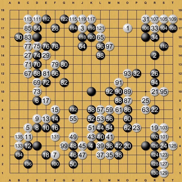 小学3年生で兄弟で囲碁が好きという。中央の競り合いでおとりの打ち込みをして、そちらは取られたが反対側に地が出来て何とか残した。この小学生は翌年文科大臣杯3人一組の団体戦全国大会小学生の部で主将として参加し全国優勝した。その後院生になったと聞く。